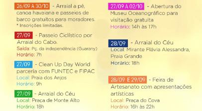 Sorteios de hospedagens e mergulhos, Feira de arte sanato local, inscrições para atividades como, por exem plo, o passeio de barco e visitações em Museus da cidade de forma totalmente gratuita para moradores e turistas.