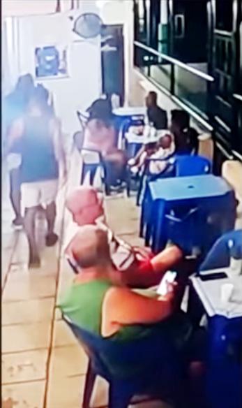 Imagens feitas por câmeras de segurança mostram a vítima senta da em uma mesa ao lado de duas mulheres e uma criança. O atirador chega no local e atira no agen te, que não reage. Outras pessoas que estão no bar correm com a ação do policial. De acordo com a Polícia Militar, equipes do 41º BPM (Irajá) foram acionadas para a ocor rência. A vítima já foi en contrada sem vida.