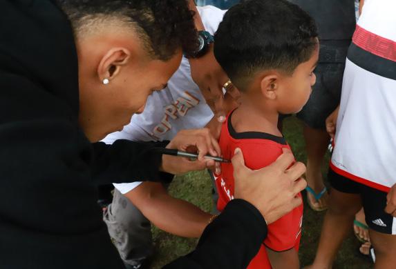 Jogador Lázaro Vinícius encanta crianças de projetos esportivos em Rio das Ostras