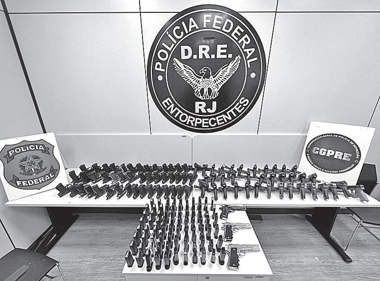 Janeiro. As pistolas, que se encontravam com a numera ção raspada, foram localiza das durante fiscalização rea lizada por policiais lotados na Delegacia de Repressão a Drogas (DRE/RJ).
