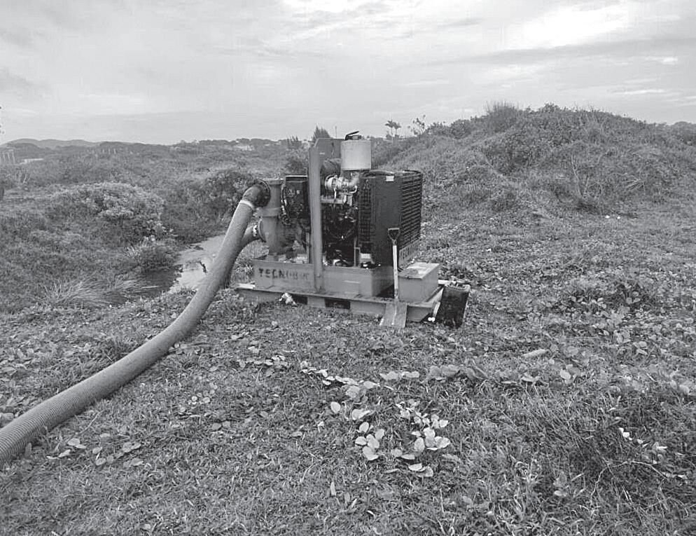 A Prefeitura de Búzios, por meio da Secretaria de Obras, Saneamento e Drena gem adquiriu na se gunda-feira (28) mais duas (02) bombas para ajudar na drenagem das áreas alagadas pelas fortes chuvas que caíram no sábado (26) e domingo (27) no mu nicípio. O volume de chuva em 24h atingiu 254 mm. Pág. 2