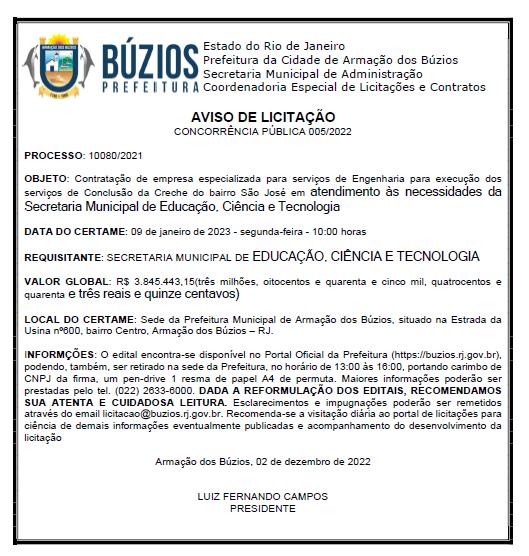 CLASSIFICAÇÃO - A classificação final, após aná lise dos recursos, estará dis ponível no dia 16 de dezem bro de 2022. Para efetivar a matrícula, o responsável pela criança contemplada com a vaga deverá comparecer à Unidade Escolar indicada, no período de 24 a 31 de janeiro de 2023, munido de original e cópia dos documentos lis tados na Resolução.