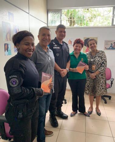 Participaram do encontro, o secretário de Direitos Hu manos e Segurança, Ruy França; o comandante do 25º BPM, tenente-coronel Leonardo Oliveira; coordenadora da Patrulha Maria da Penha Municipal, Regiane Cardoso da Costa e Solange Jardim da Costa Barbosa; e da Pa trulha Maria da Penha da PM, Diogo Cesar e Gilmar Faria Mota.
