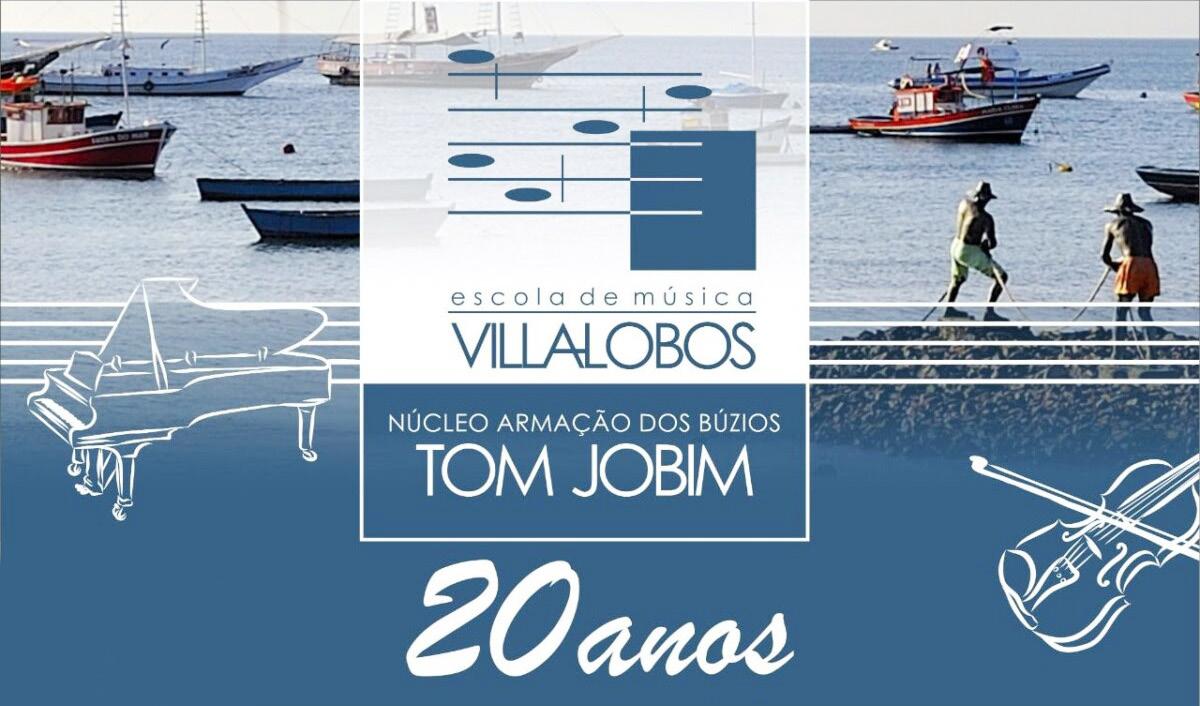 Música Villa-Lobos, Núcleo Avançado Tom Jobim em comemoração aos 20 anos de serviços prestados à comunidade, realizará nos pró-