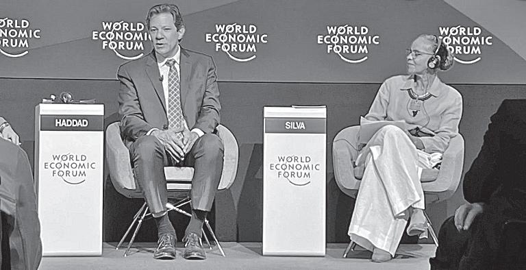 Ministro da Fazenda participa de reuniões bilaterais e, ao lado da ministra do Meio Ambiente e Mudança do Clima, Marina Silva, tranquiliza a comunidade internacional em relação aos ataques do dia 8 de janeiro