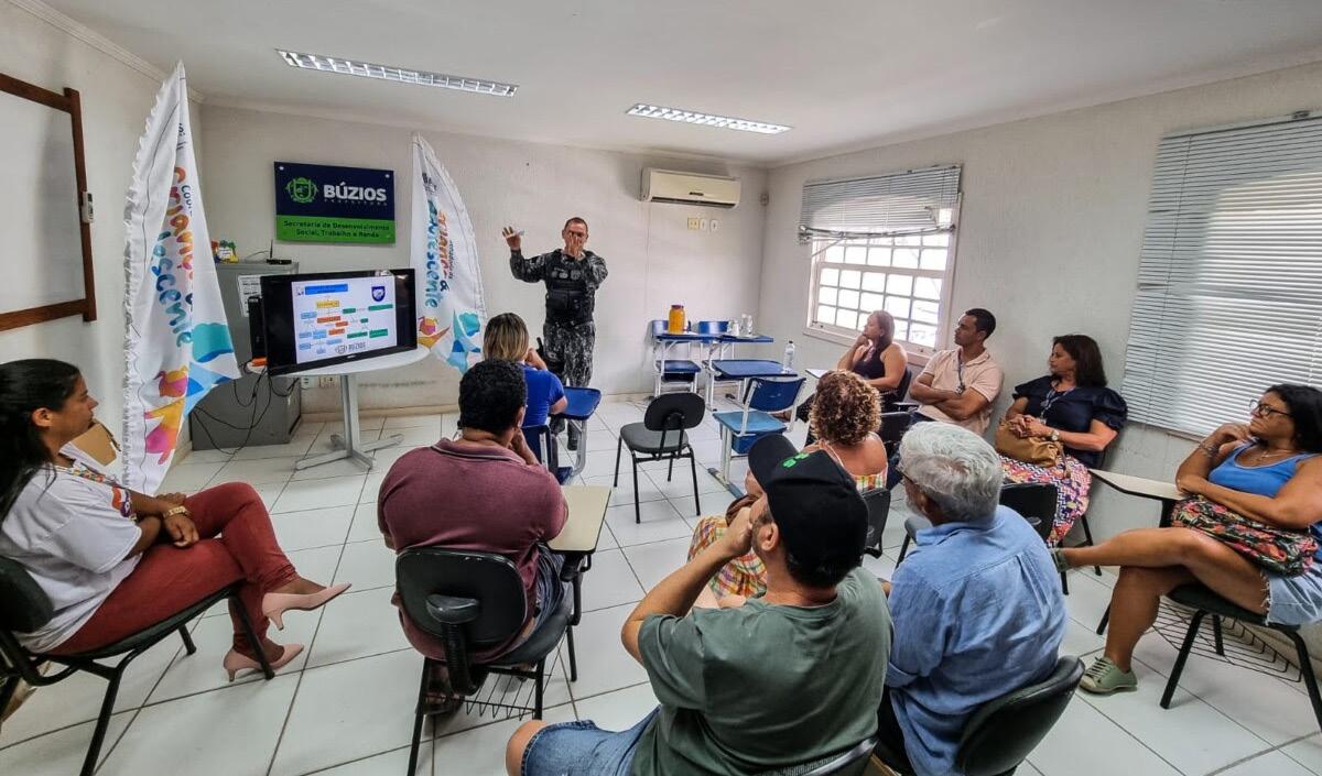 A Secretaria de Desenvolvimento Social, Trabalho e Renda, por meio da coordenadoria da Criança e Adolescente realizou na quinta-feira (02) uma palestra educativa de “Combate às Drogas e ao Álcool” para comerciantes locais, com o Coordenador Geral do PROGEP e CMT da Guarda Mirim de Armação dos Búzios, Inspetor Sant’Anna. O evento foi realizado no auditório da Secretaria.