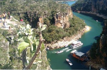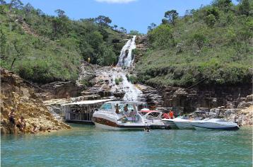 Turistas buscam lindas cachoeiras e as águas do Lago de Furnas em Capitólio, MG.
