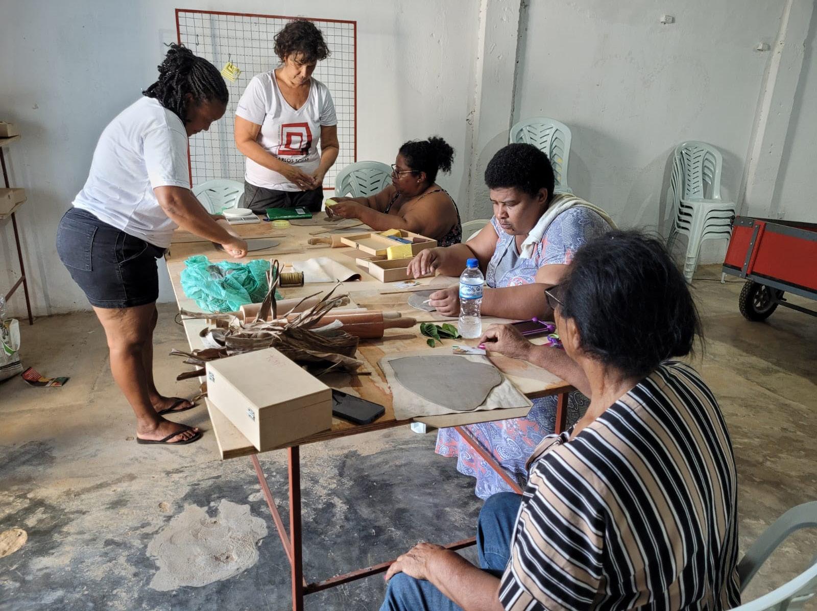 as cerca, como sementes de aroeira e folhas de bananeira. Os encontros para a criação da coleção das peças sustentáveis acontecem uma vez por semana por meio do “Somos Divas na Luz do Candeeiro”, projeto da Prolagos, em parceria com o Instituto Carlos Scliar. Muito além de oficinas de cerâmica, a ação tem foco em fomentar a representatividade e a independência das participantes, estimulando o potencial criativo e capacitando para a confecção de peças que poderão apoiá-las na complementação da renda familiar. “Os acessórios confeccionados respeitam as particularidades das comunidades de origem. Ao utilizarmos os elementos encontrados nos próprios quilombos,