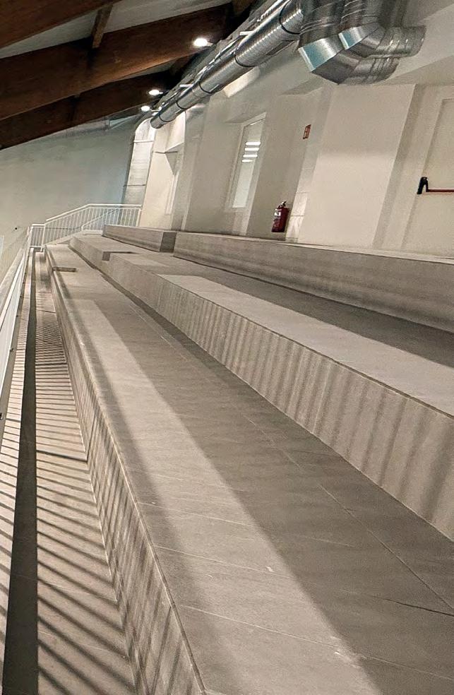 duchas y podios, con una inversión total de 420.513,82 euros. Además, se ha intervenido en las pistas cubiertas, renovando los cerramientos deteriorados y mejorando el aislamiento de los paneles de cubierta por 235.000 euros.