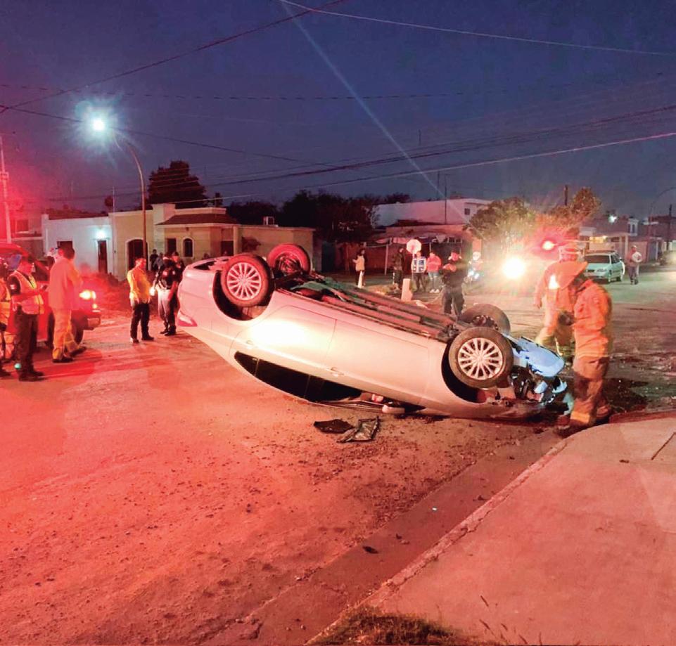 volcado sobre la calle Quintana Roo y Rincón en el Centro de la ciudad, luego de impactarse contra una loma de tierra.