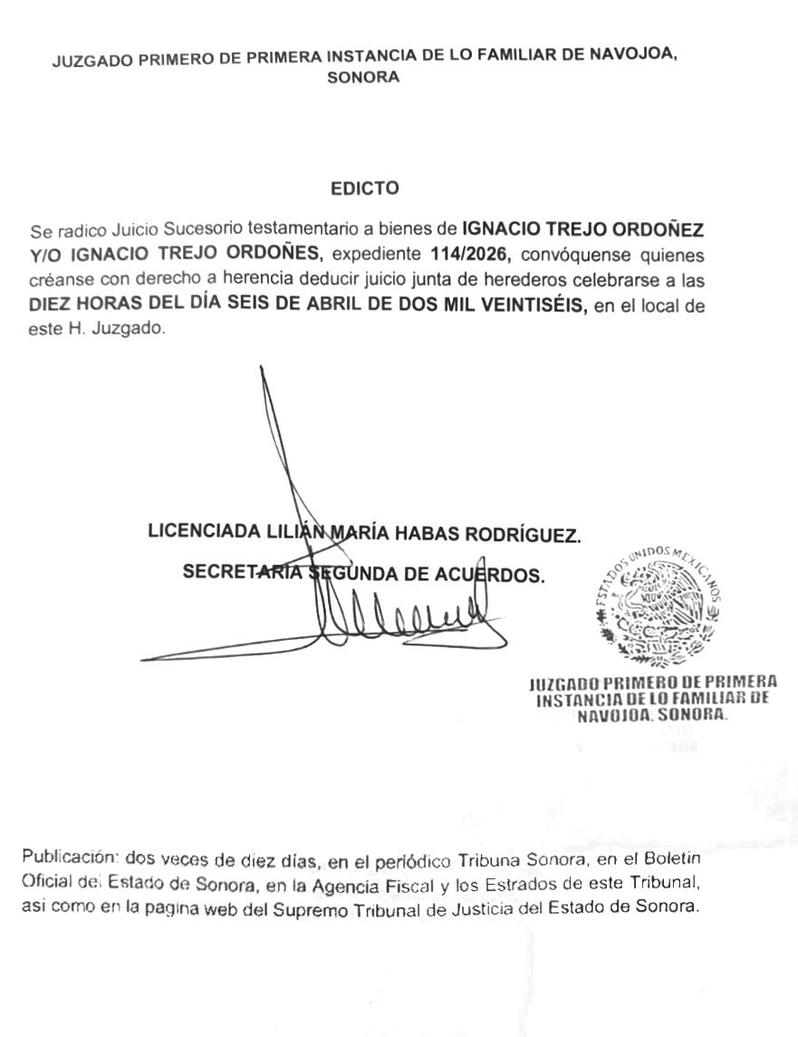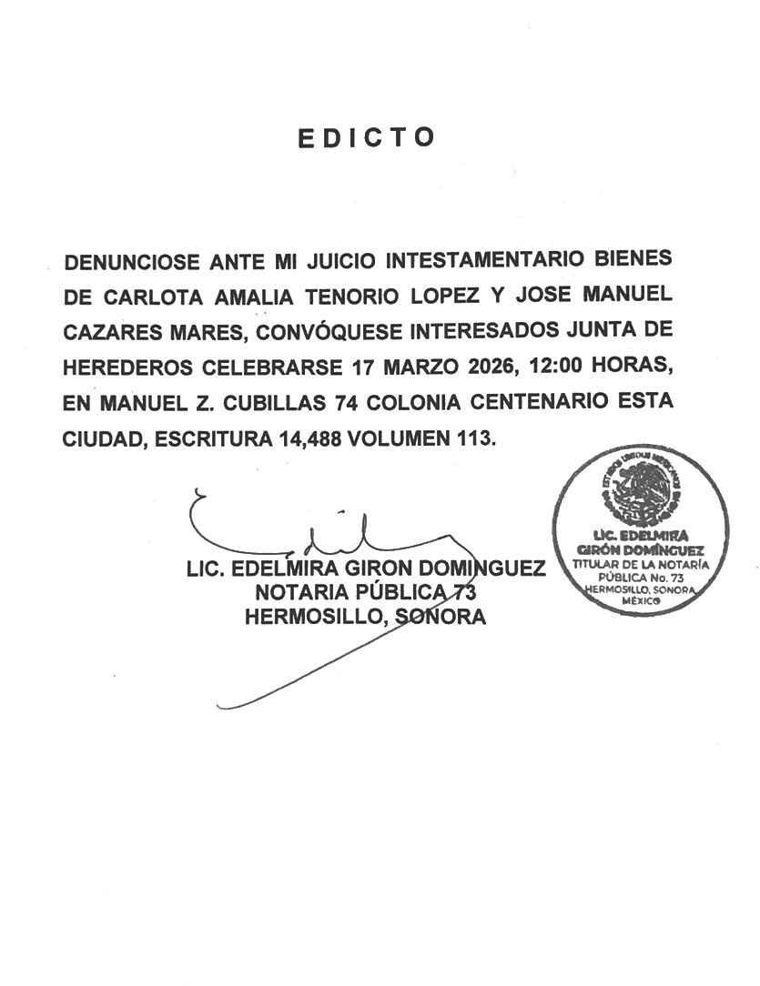 TRIBUNA SONORA, periodicidad Diario, Editor Responsable Sergio Marcial Garcia, Reserva de Derechos al Uso Exclusivo del Título 04-2025-052014313200-101, Certificados de Licitud de Título y Contenido 17817. Con domicilio de la publicación en Gral. José María Yáñez 2,