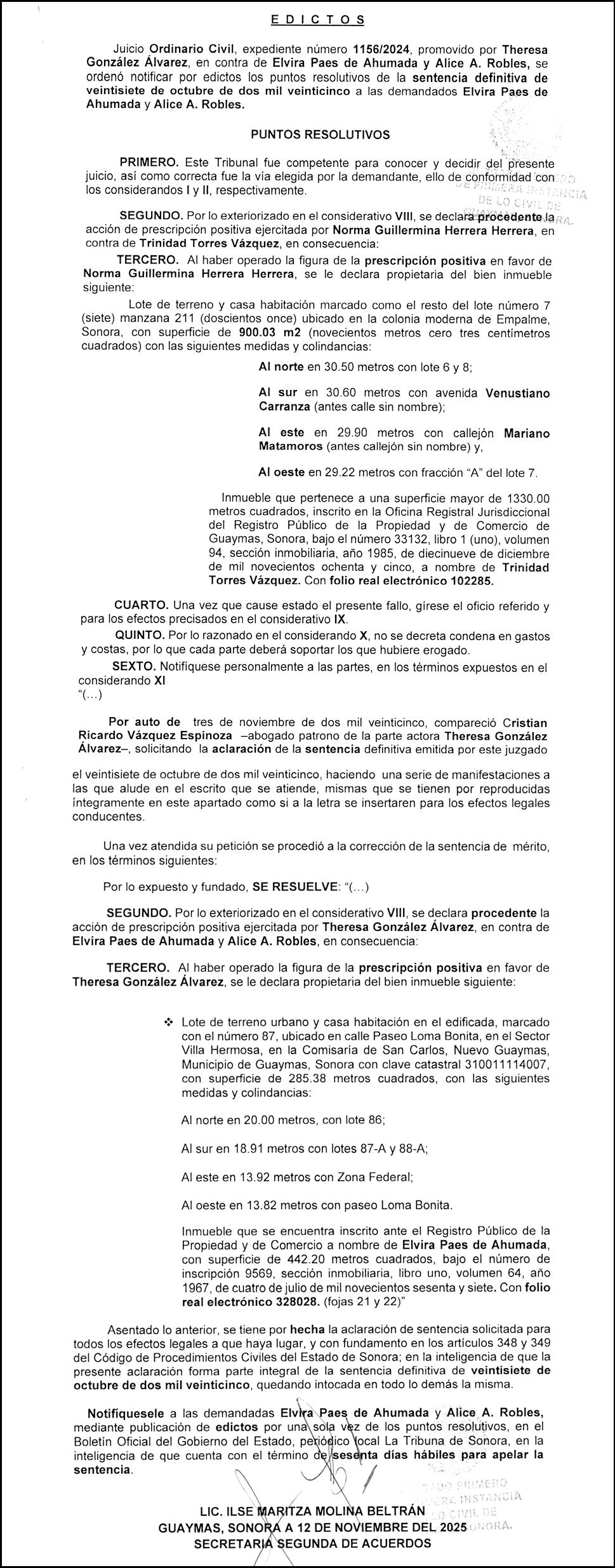 SONORA, periodicidad Diario, Editor Responsable Hilario Olea Fontes, Reserva de Derechos al Uso Exclusivo del Título 04-2025-052014313200-101, Certificados de Licitud de Título y Contenido 17817. Con domicilio de la publicación en Gral.