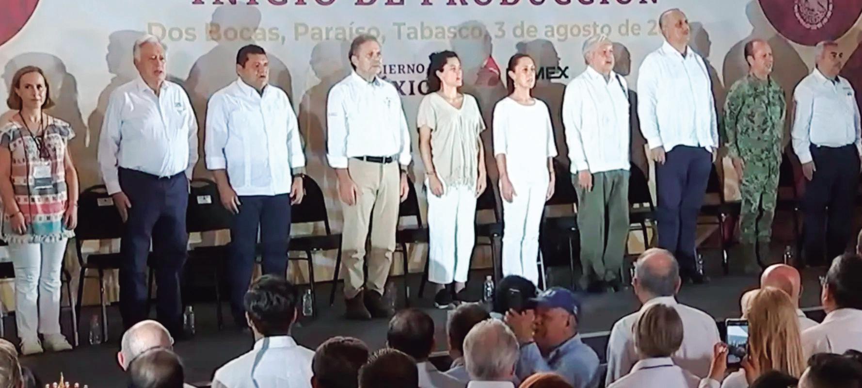 El presidente López Obrador y la presidenta electa Claudia Sheinbaum encabezaron la ceremonia de puesta en marcha de la refinería