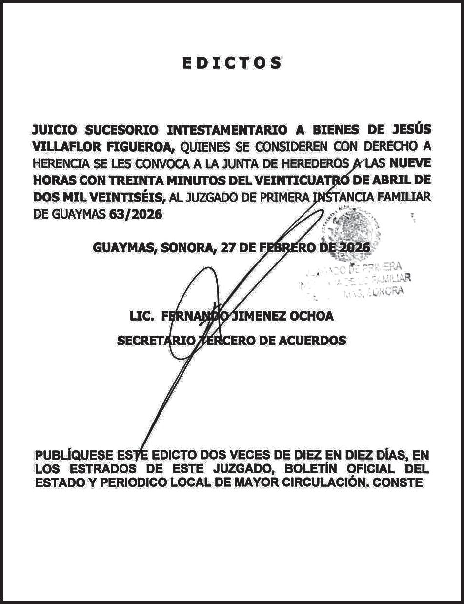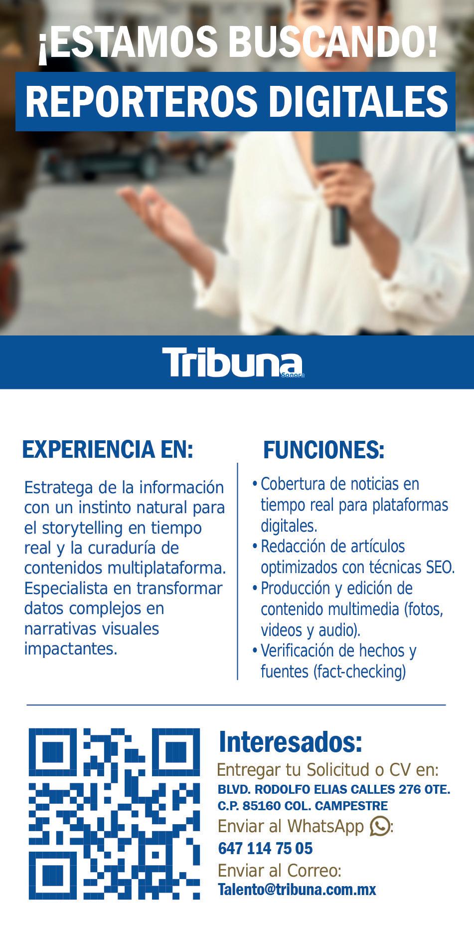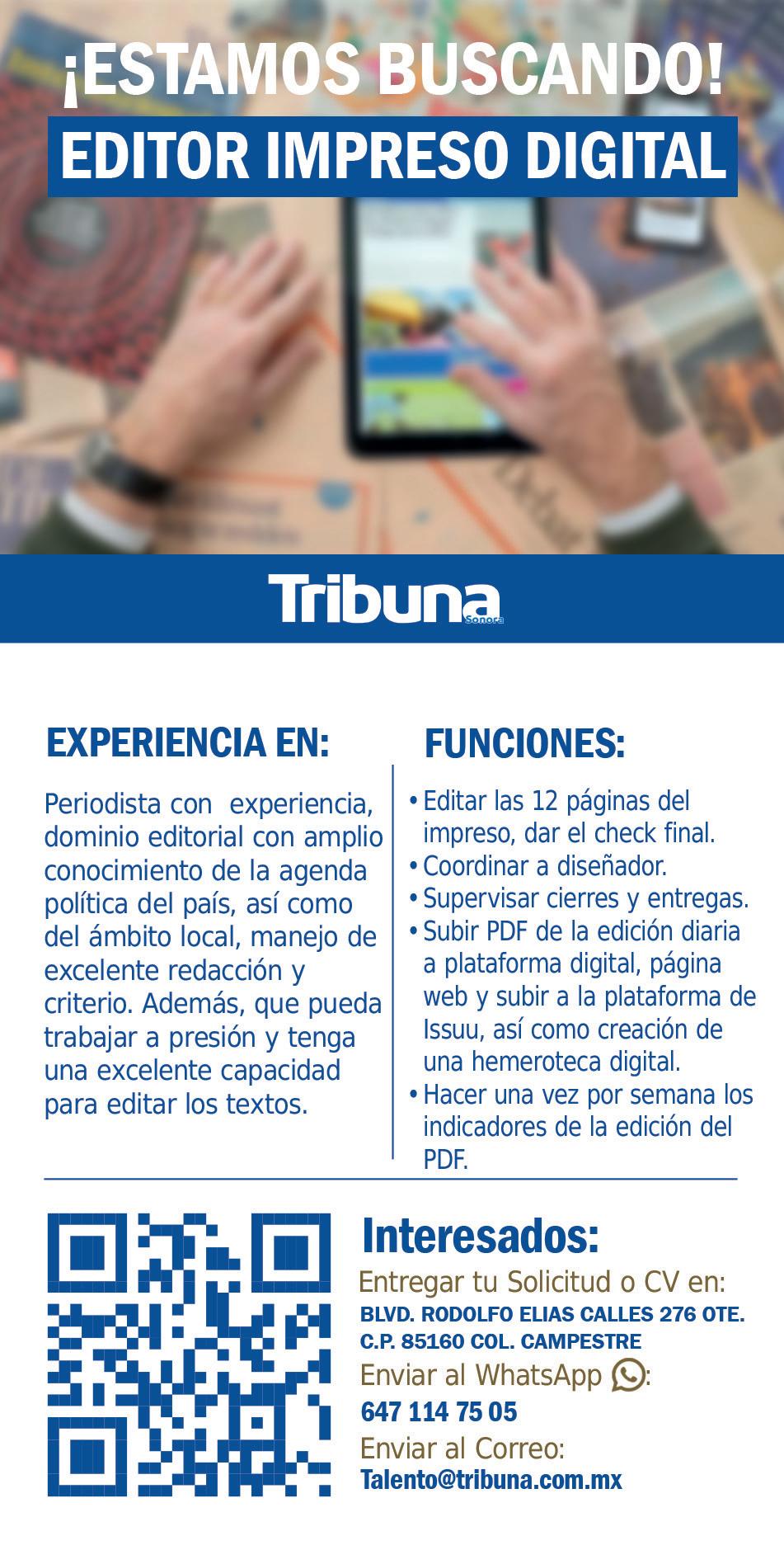 TRIBUNA SONORA, periodicidad Diario, Editor Responsable Sergio Marcial Garcia, Reserva de Derechos al Uso Exclusivo del Título 04-2025-052014313200-101, Certificados de Licitud de Título y Contenido 17817. Con domicilio de la publicación en Gral. José María Yáñez