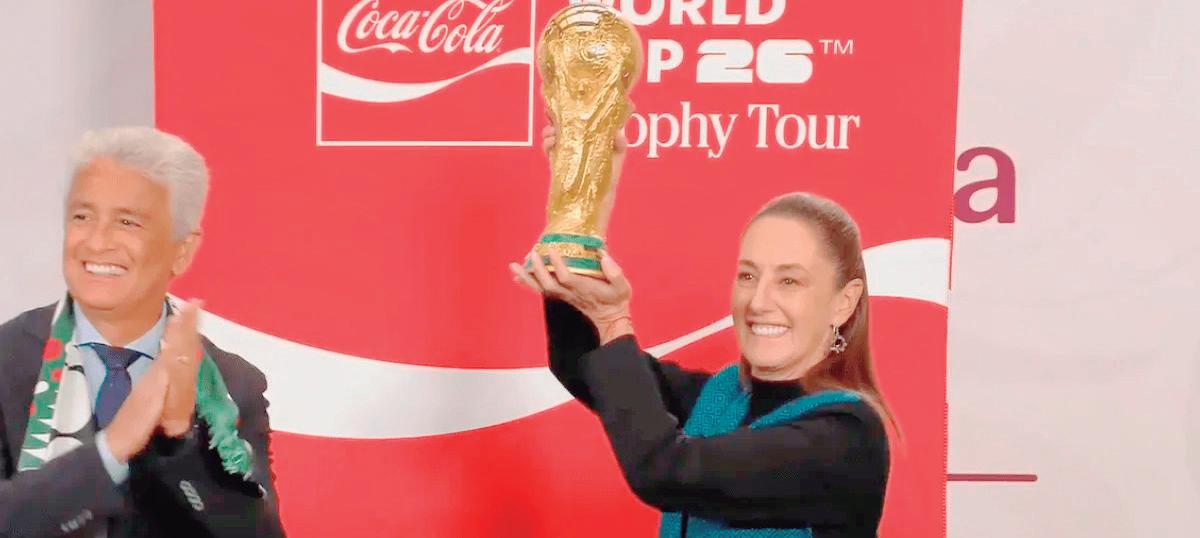 A 100 días de que arranque el Mundial 2026, el trofeo fue llevado a Palacio Nacional durante la conferencia matutina de la presidenta Sheinbaum.