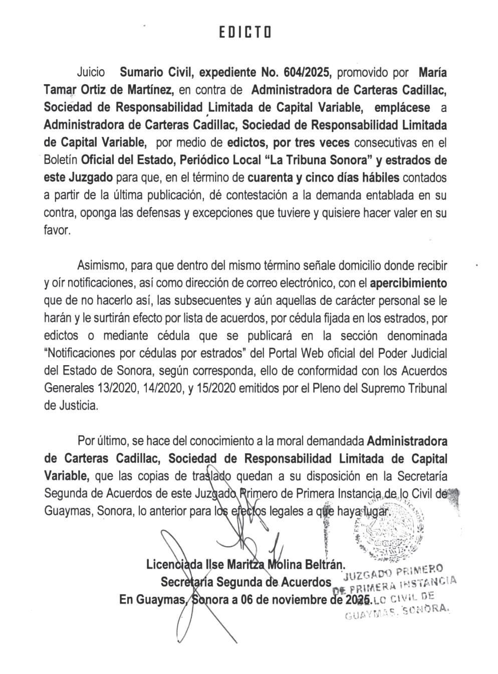 El juez determinó prisión preventiva debido al riesgo procesal que representa el acusado. De acuerdo con la Fiscalía General de Justicia del Estado de Sonora
