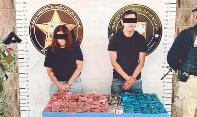 Elementos de la Agencia Ministerial de Investigación Criminal (AMIC) y de la Secretaría de la Defensa Nacional realizaron un operativo en la colonia Real del Carmen de Hermosillo, que culminó con la detención de Francisco Ramsés ‘N’, de 25 años, y Sandra Marisol ‘N’, de 31 años. Durante la intervención se aseguró una mochila con 260 dosis de marihuana y 40 envoltorios de metanfetamina, además de dinero en efectivo presuntamente ligado a la venta de drogas. Los detenidos y las sustancias fueron puestos a disposición del Ministerio Público del Centro de Operaciones Estratégicas (COE) para continuar con la investigación y determinar la situación jurídica de los implicados.