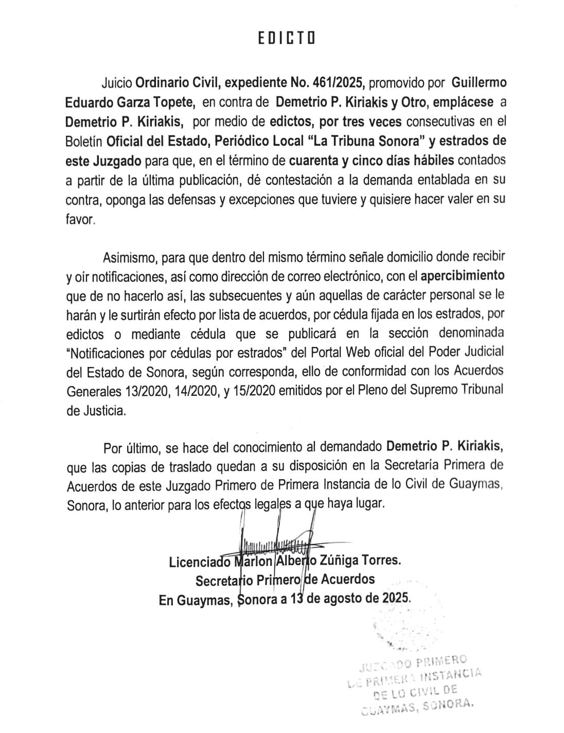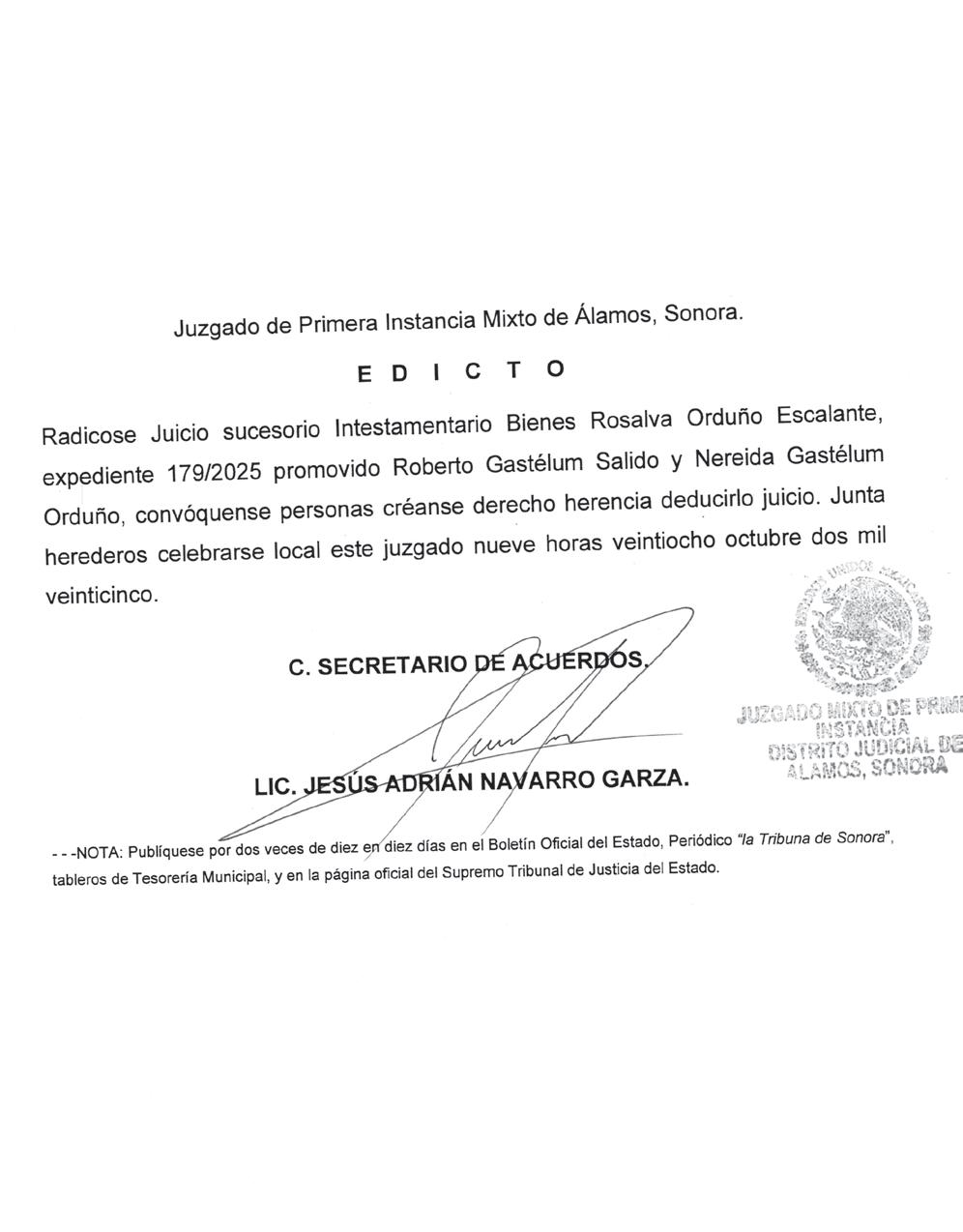 TRIBUNA SONORA, periodicidad Diario, Editor Responsable Hilario Olea Fontes, Reserva de Derechos al Uso Exclusivo del Título 04-2025-052014313200-101, Certificados de Licitud de Título y Contenido 17817. Con domicilio de la publicación en Gral. José María Yáñez 2, San Benito, Hermosillo, C.P. 83190, Sonora, México. Impreso y distribuido por Líneas Sonora Hoy CW, Blvd. Rodolfo Elías Calles #278 Ote. Col. Campestre, entre Durango y Juan Álvarez, C.P. 85160, Cajeme, Sonora.