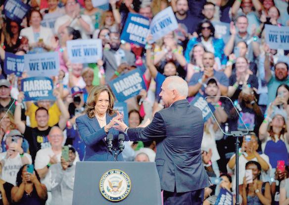 PESO NO MEJORA Por su parte, el peso mexicano intentó recuperar terreno durante la sesión de ayer, pero al final predominó la incertidumbre económica, la volatilidad financiera y la expectativa del Banco de México (Banxico) sobre qué decisión monetaria tomará este jueves en lo referente a su tasa. >AL CIERRE PÁG. 2A HARRIS Y WALZ SE PRESENTAN ANTE LOS ESTADOUNIDENSES EN SU PRIMER MITIN >MUNDO PÁG. 6A
