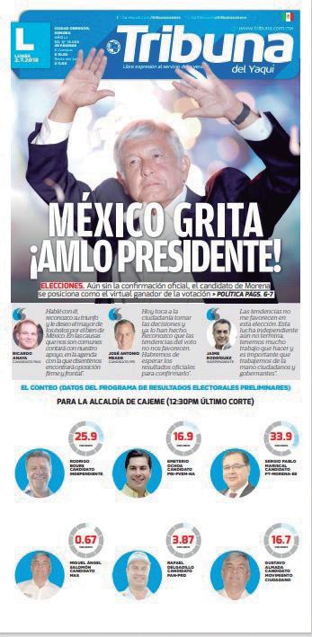 México grita AMLO presidente fue el titular de TRIBUNA el 2 de julio del 2018