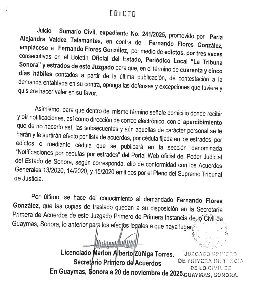 TRIBUNA SONORA, periodicidad Diario, Editor Responsable Hilario Olea Fontes, Reserva de Derechos al Uso Exclusivo del Título 04-2025-052014313200-101, Certificados de Licitud de Título y Contenido 17817. Con domicilio de la publicación en Gral. José María Yáñez 2, San Benito, Hermosillo, C.P. 83190, Sonora, México. Impreso y distribuido por Líneas Sonora Hoy CW, Blvd. Rodolfo Elías Calles #278 Ote. Col. Campestre, entre Durango y Juan Álvarez, C.P. 85160, Cajeme, Sonora.