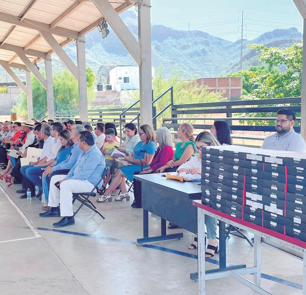 El maestro Pablo Salomón Montiel, director de primarias en Sonora, en representación del secretario de Educación y Cultura, Froylán Gámez Gamboa, acompañado del