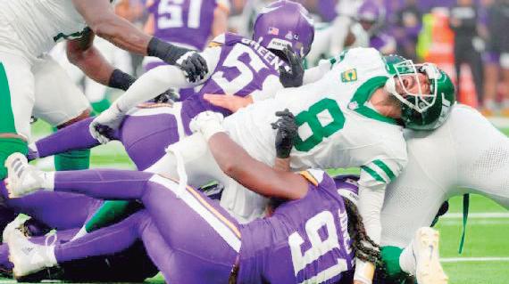 Se confirmó que Aaron Rodgers, quarterback de New York Jets, presenta un esguince en el tobillo, por lo que es duda para el juego de fin de semana de los Jets frente a Buffalo Bills, equipo con el que disputan la cima de la División Este de la Conferencia Americana. Aaron Rodgers será reevaluado, dijo ayer por la mañana el coach de los Jets, Robert Saleh. “Todos los datos preliminares dicen que él está bien”, agregó. Rodgers de 40 años de edad, sufrió otro revés el pasado domingo en Londres, donde los Jets cayeron con los Minnesota Vikings 23-17. Fue capturado en tres ocasiones y además recibió 11 golpes, con lo que acumula un total de 25 contactos en los últimos dos juegos, ambos con derrotas.