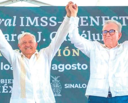en la inauguración de un hospital del IMSS-Bienestar y aprovechó para darle su respaldo a Rocha. “Nosotros le tenemos toda la confianza al gobernador Rubén Rocha Moya de Sinaloa, y lo felicito porque da la cara, no dejó pasar ni un día, porque no hay casualidad”. El jefe del Ejecutivo enfatizó que, si bien hay buenas relaciones con el gobierno de Estados Unidos, “hay esa tentación de querer mandar en todas