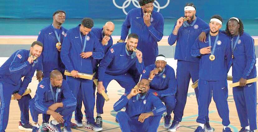 Los jugadores presumiendo su medalla de oro