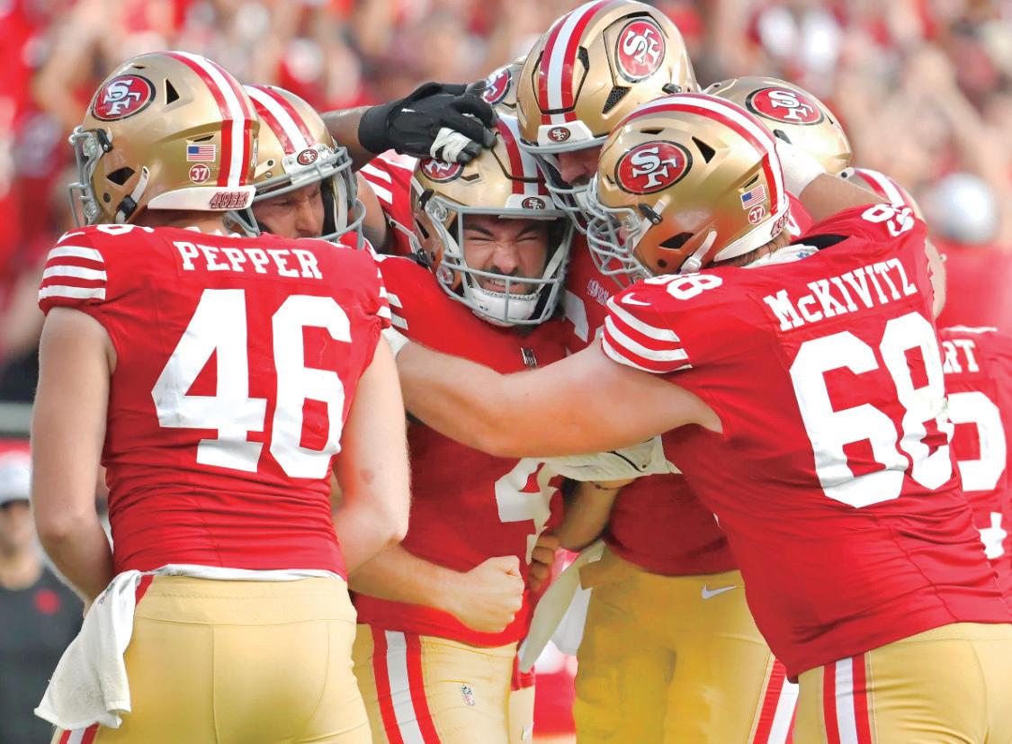 defensores de la NFC (5-4), quienes han ganado juegos consecutivos por primera vez esta temporada. Pero el pateador, usualmente confiable, que tenía un registro de 13 de 14 antes de ayer, también falló desde 49 y 50 yardas hacia la izquierda antes de errar hacia la derecha en un intento de 44 yardas que habría dado a San Francisco una ventaja de seis puntos con 3:09 restantes. McCaffrey terminó con 39 yardas en 13 acarreos y tuvo seis recepciones para 68 yardas.