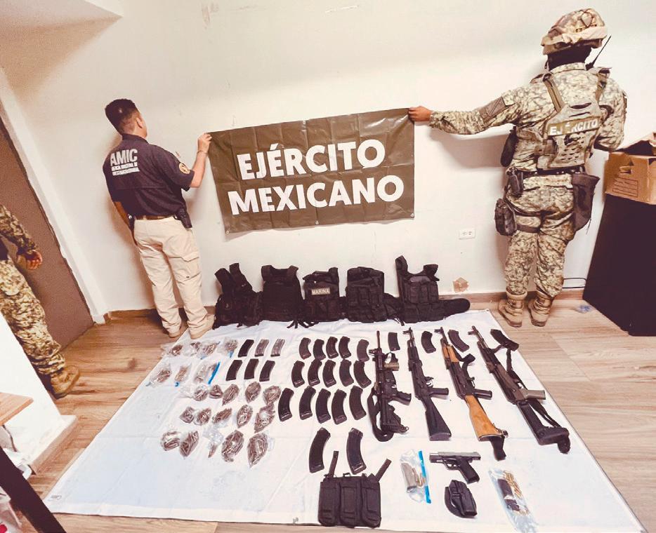 cargadores y cientos de cartuchos, así como chalecos y placas balísticas, los cuales quedaron a disposición de las autoridades para integrar la carpeta de investigación correspondiente.