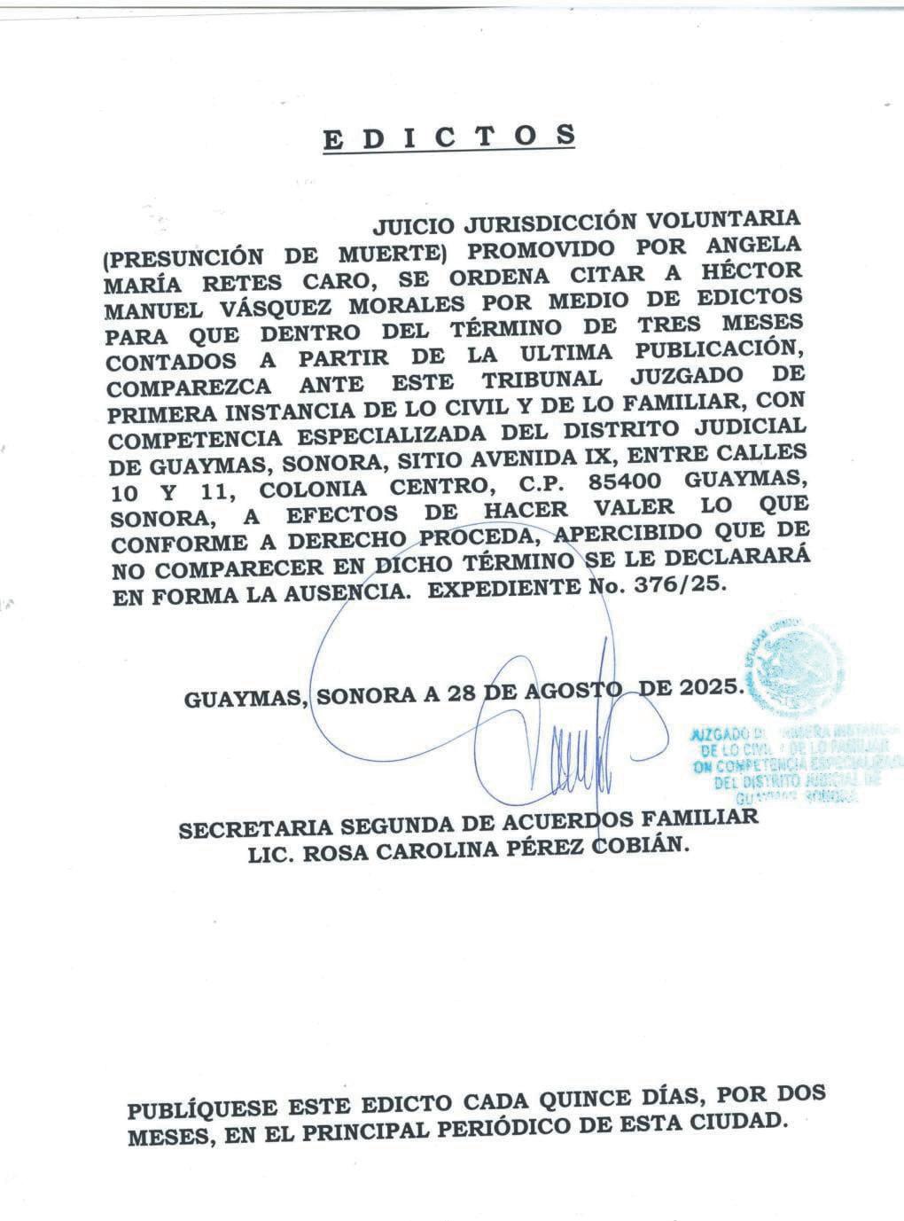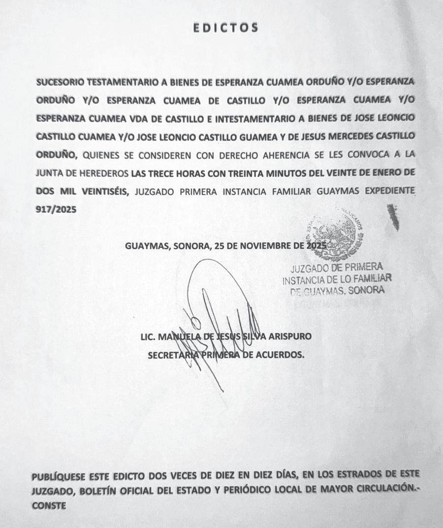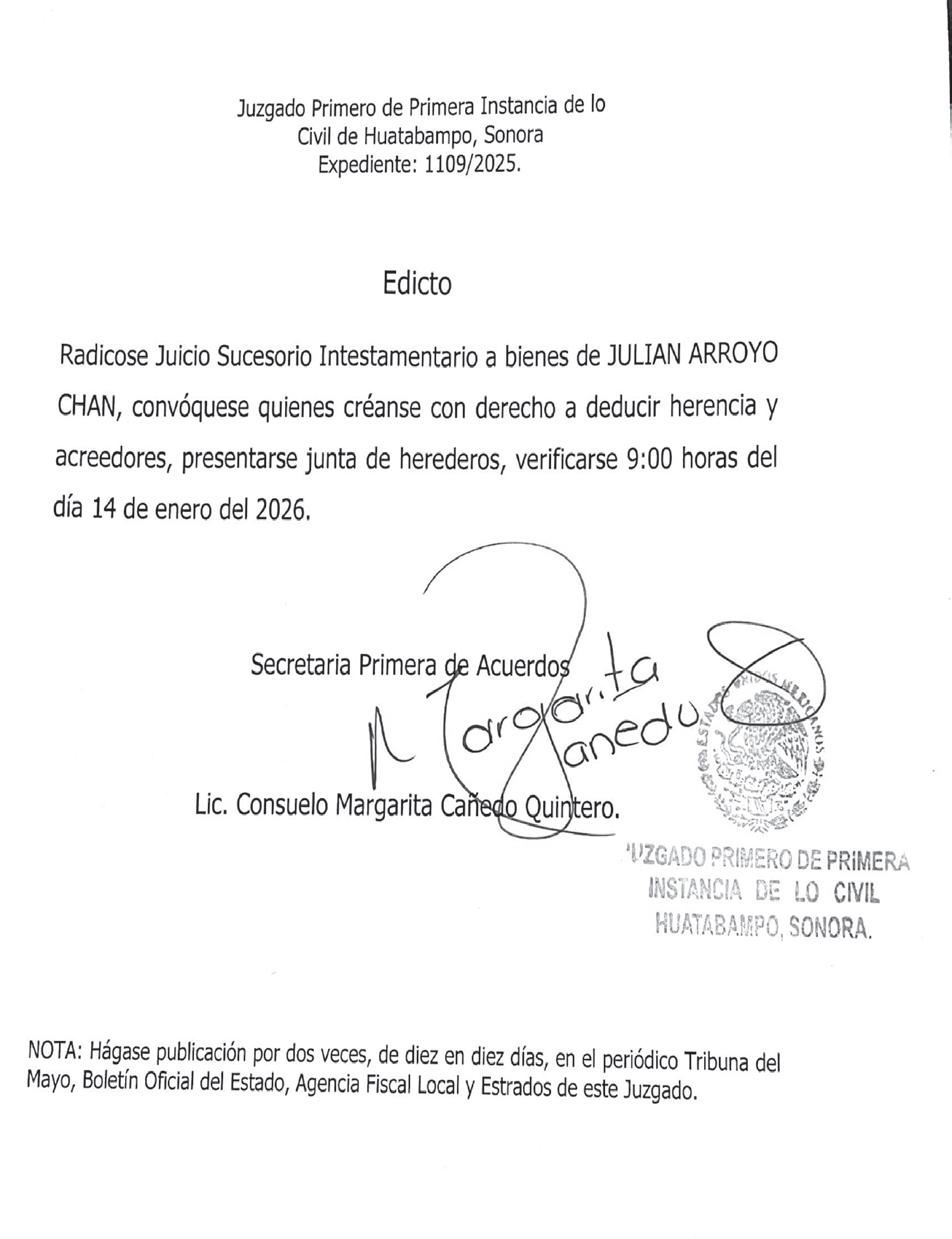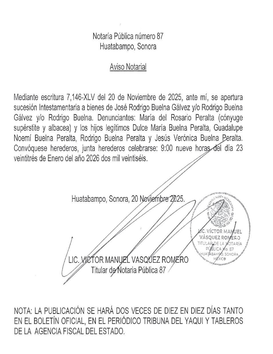 TRIBUNA SONORA, periodicidad Diario, Editor Responsable Hilario Olea Fontes, Reserva de Derechos al Uso Exclusivo del Título 04-2025-052014313200-101, Certificados de Licitud de Título y Contenido 17817. Con domicilio de la publicación en Gral. José María