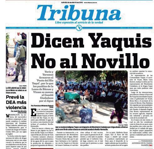 La portada no solo capturó la dimensión visual del movimiento, sino también su trasfondo social. La defensa del agua se había convertido ya en un símbolo de identidad y de resistencia. El rechazo al Novillo no era únicamente una demanda técnica o administrativa: era un llamado a ser escuchados, a detener una obra que muchos consideraban injusta, desequilibrada y perjudicial para las comunidades del sur de Sonora. En esa misma edición, TRIBUNA contextualizó el mo -