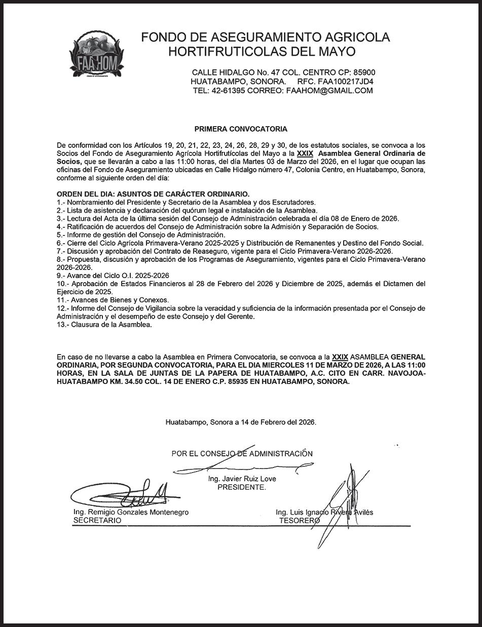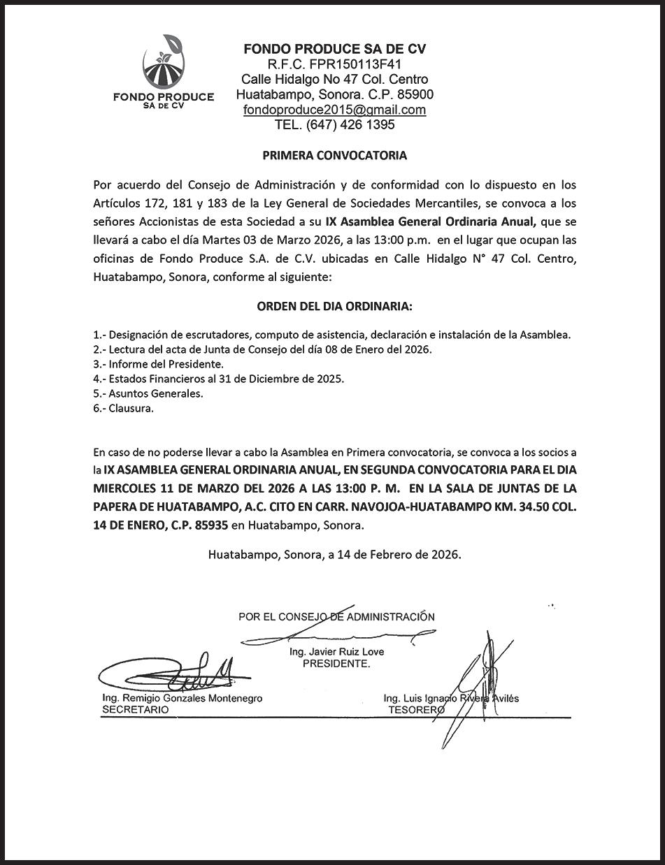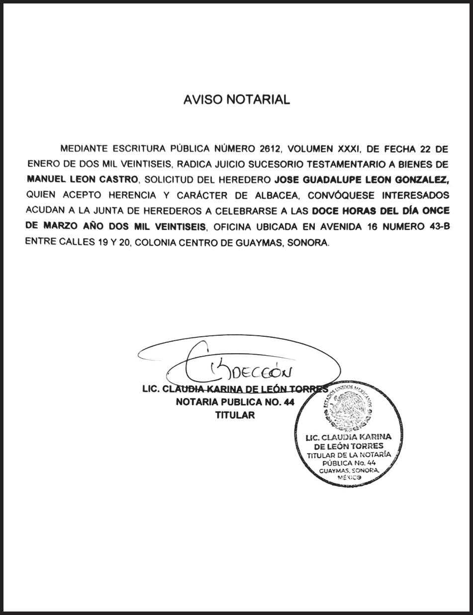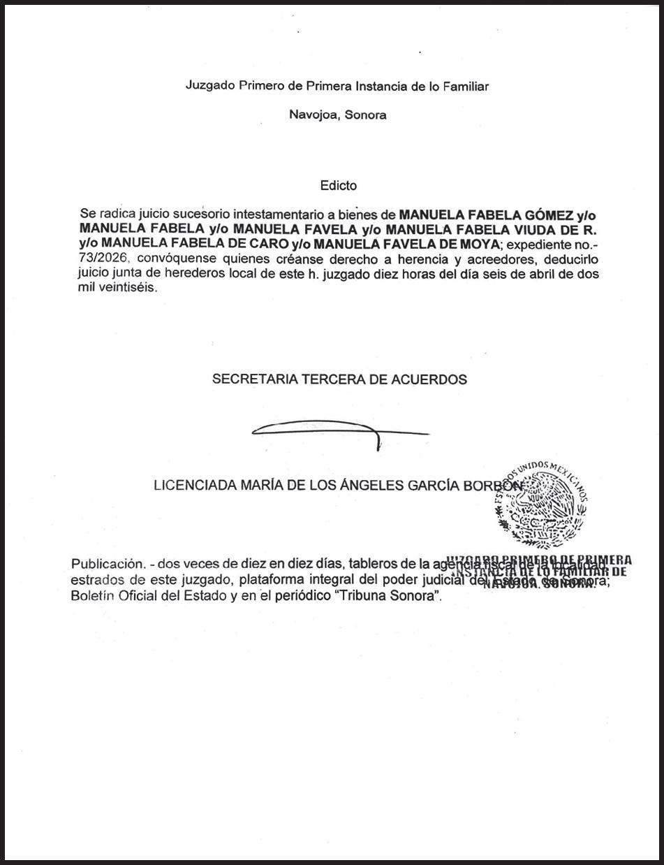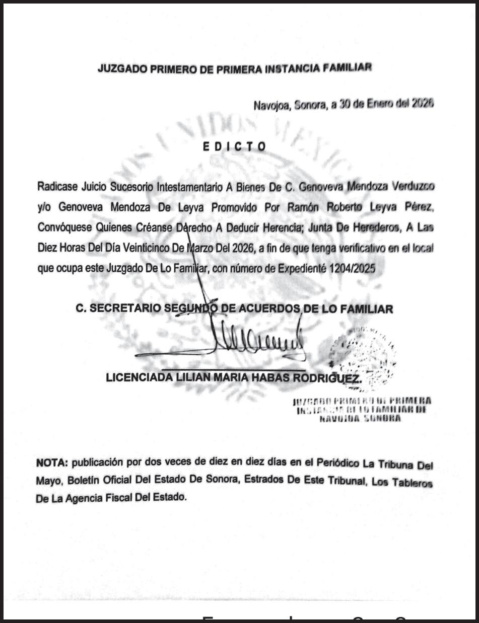 TRIBUNA SONORA, periodicidad Diario, Editor Responsable Sergio Marcial Garcia, Reserva de Derechos al Uso Exclusivo del Título 04-2025-052014313200-101, Certificados de Licitud de Título y Contenido 17817. Con domicilio de la publicación en Gral. José María Yáñez 2, San Benito,
