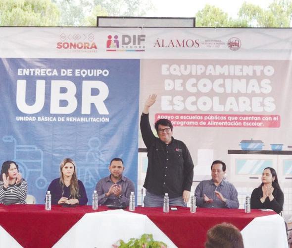 El Gobierno de Sonora, a través del Sistema DIF Sonora, fortaleció el bienestar de familias del municipio de Álamos y comunidades aledañas mediante la entrega de equipamiento para cocinas escolares y la Unidad Básica de Rehabilitación (UBR), acciones que contribuyen a garantizar el acceso a una alimentación adecuada y a servicios de rehabilitación para mejorar la calidad de vida de la población. En ocho escuelas de comunidades cercanas
