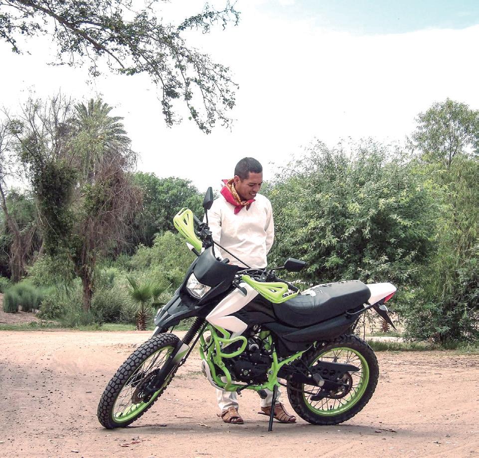 Jesús Ramón Valencia, el danzante mayo junto a su motocicleta