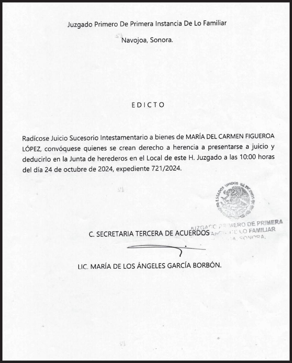 Quinto Circuito; Karina Jesús Almada Rábago del Juzgado 1er Distrito en el Estado de Sonora, con residencia en Hermosillo, Quinto Circuito; Noel Castro Melgar del Juzgado 3er de Distrito en el Estado de Sonora con residencia en Hermosillo, Quinto Circuito; Antonio Genaro Valerio Pinillos del Juzgado 11 de Distrito en el Estado de Sonora con residencia en Hermosillo, Quinto Distrito; Antonio Mora Diez del Juzgado 13 de Distrito en el Estado de Sonora con residencia en Hermosillo, Quinto Distrito; Lorena Geraldo Ibarra del Juzgado 4to de Distrito en el Estado de Sonora con residencia en Nogales, Quinto Distrito; Vacante del Juzgado 9no de Distrito en el Estado de Sonora con residencia en Agua Prieta, Quinto Distrito y Guillermo Jorge Campo García Suárez del Juzgado 8avo de Distrito en el Estado de Sonora con residencia en Ciudad Obregón, Quinto Distrito.