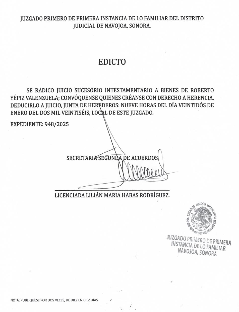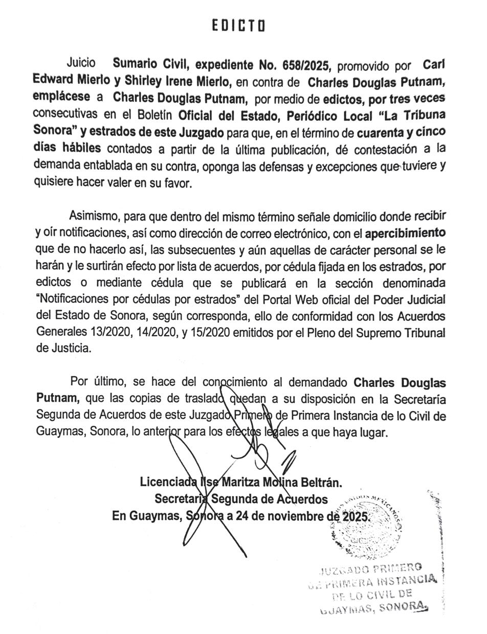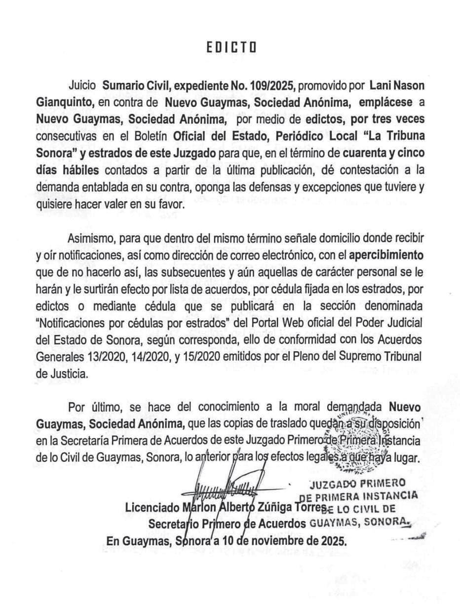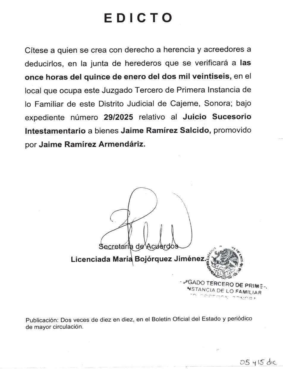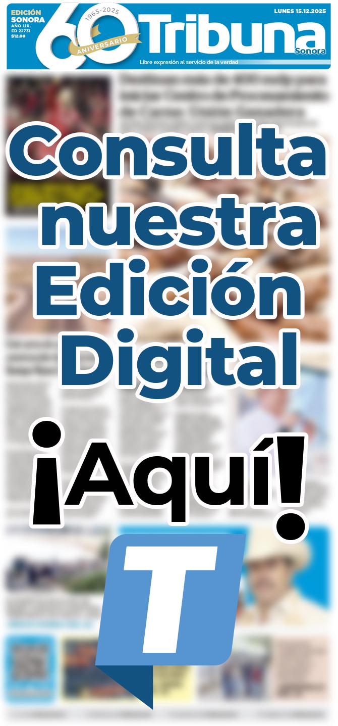 TRIBUNA SONORA, periodicidad Diario, Editor Responsable Hilario Olea Fontes, Reserva de Derechos al Uso Exclusivo del Título 04-2025-052014313200-101, Certificados de Licitud de Título y Contenido 17817. Con domicilio de la publicación en Gral. José María Yáñez 2,