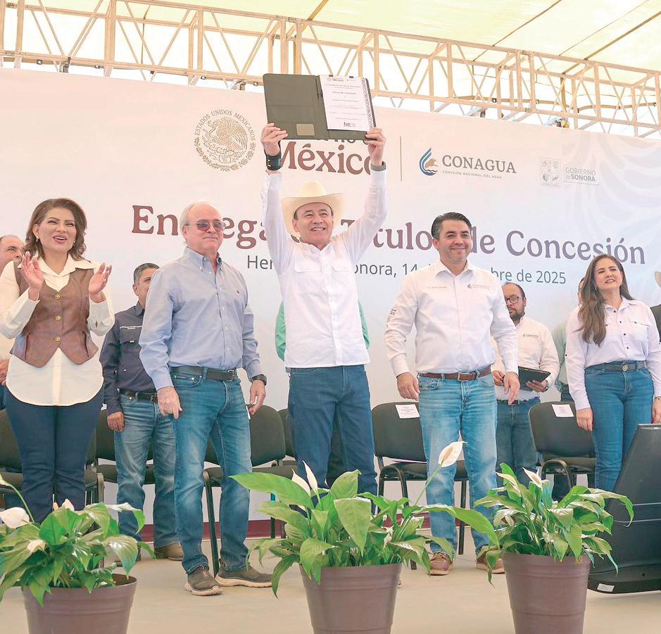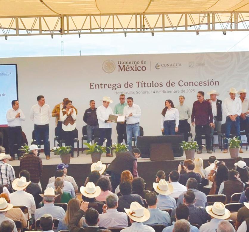 El gobernador de Sonora, Alfonso Durazo Montaño, junto con Efraín Morales López, director general de Conagua, entregó títulos de concesión de agua para uso agrícola a productores del estado, con el fin de brindar certeza jurídica y fortalecer la productividad del campo.