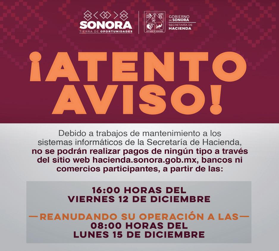 Días quedó fuera de servicio el sitio web de Hacienda Sonora por trabajos de mantenimiento informático