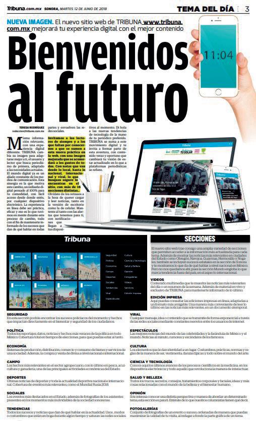 La transición se consolidó con el lanzamiento oficial del nuevo portal: www.tribuna. com.mx, un proyecto anunciado con el titular ‘Bienvenidos al futuro’, que no solo celebraba una actualización tecnológica, sino una transformación profunda en la