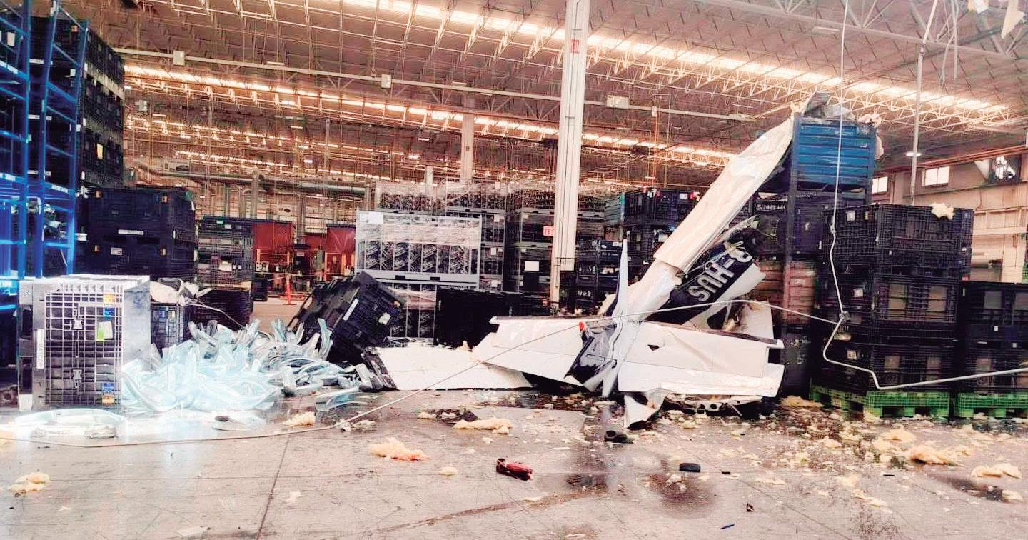 La avioneta impactó el techo de lámina de una empresa dedicada al ensamble de autopartes y posteriormente cayó al interior de la planta, ocasionando daños materiales y un incendio. Elementos de Bomberos, Protección Civil, Cruz Roja y corporaciones de seguridad acudieron