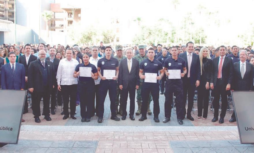 empleo, sino una causa. Mujeres y hombres que entienden que portar un uniforme es asumir una responsabilidad con la sociedad. En Sonora estamos formando policías con vocación, con valores y con preparación, porque la seguridad se construye con personas comprometidas con su comunidad”, expresó el gobernador Durazo. El esquema educativo de la Universidad de la Seguridad marca transformación en el modelo de fomación policial.
