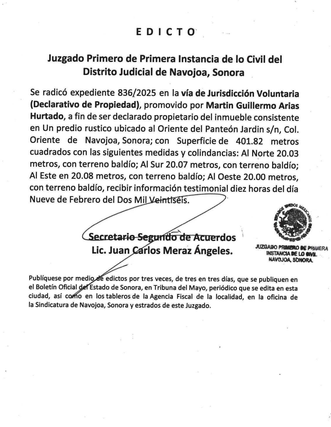 Los hechos ocurrieron el 13 de noviembre de 2025, aproximadamente a las 00:40 horas, en el exterior de un hotel que está ubicado al sur de la carretera Federal número 2, entre calle Tamaulipas y calle del Pinal, en el municipio de Ímuris, donde la víctima se encontraba. En ese lugar, el imputado, en compañía de varios sujetos, sujetó por la fuerza a la