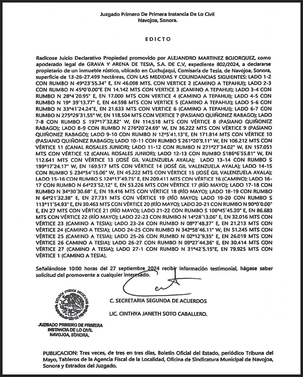 Creo que el Plan de Justicia para el Pueblo Yaqui, debió incluir esquemas de apoyos y financiamientos a proyectos de soberanía, económica y alimentaria, mediante el impulso del sector social y la economía dentro de la etnia”.