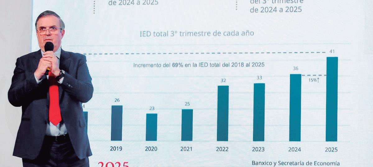 Marcelo Ebrard, secretario de Economía, destacó que la IED para el cierre de 2025 es la más alta registrada para un periodo similar en el país e implica un crecimiento de 15% respecto a lo observado en 2024.