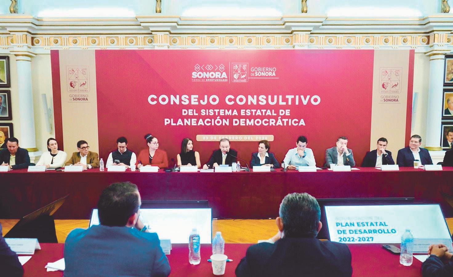 AnteintegrantesdelConsejo Consultivo del Sistema Estatal de Planeación, presidentes de cámaras empresariales y sociedad civil, Durazo destacó que esta actualización permitirá alinear las acciones prioritariasdeSonoracon el Plan Nacional de Desarrollo 2025-2030, impulsado por la presidenta ClaudiaSheinbaum.