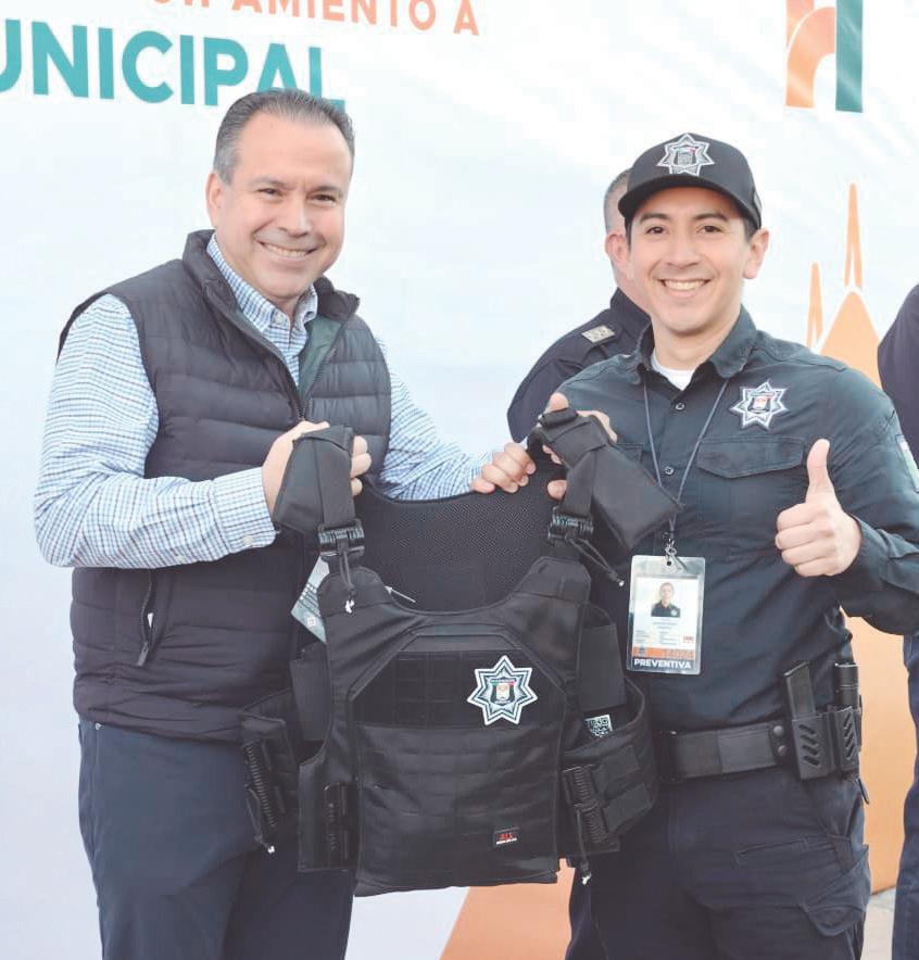 El alcalde José Manuel Quijada Lamadrid, junto con el comisario de Seguridad Pública y Tránsito Municipal, Marcus Vinicius Ornelas Quesada, entregó 30 chalecos balísticos a elementos de la corporación de Agua Prieta.