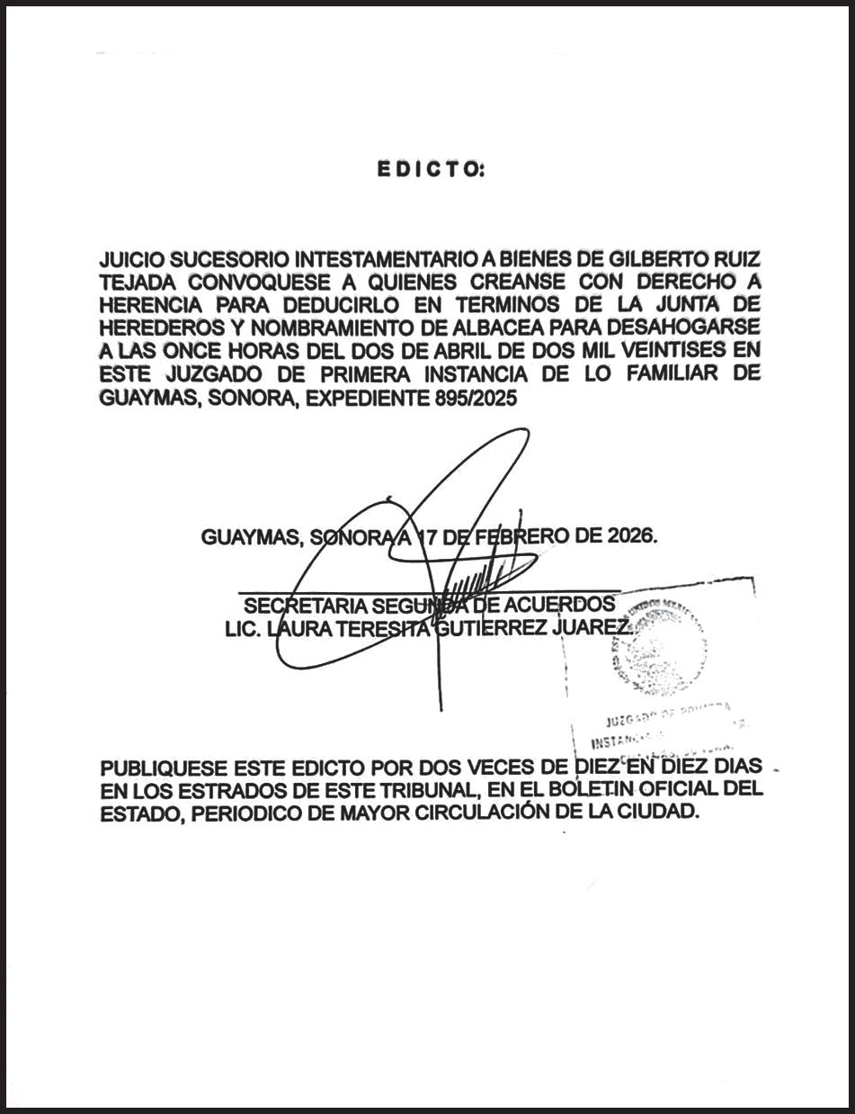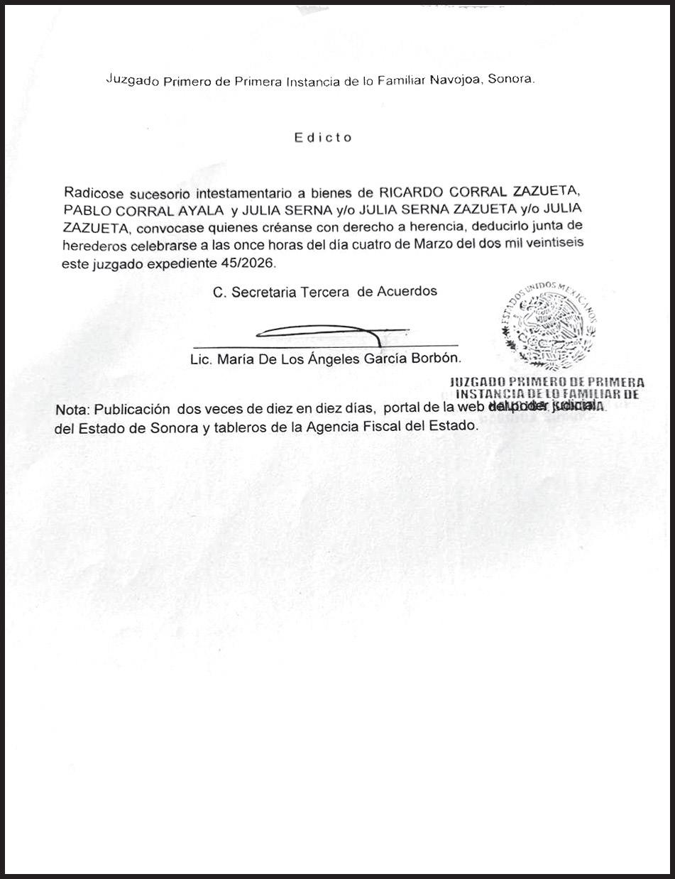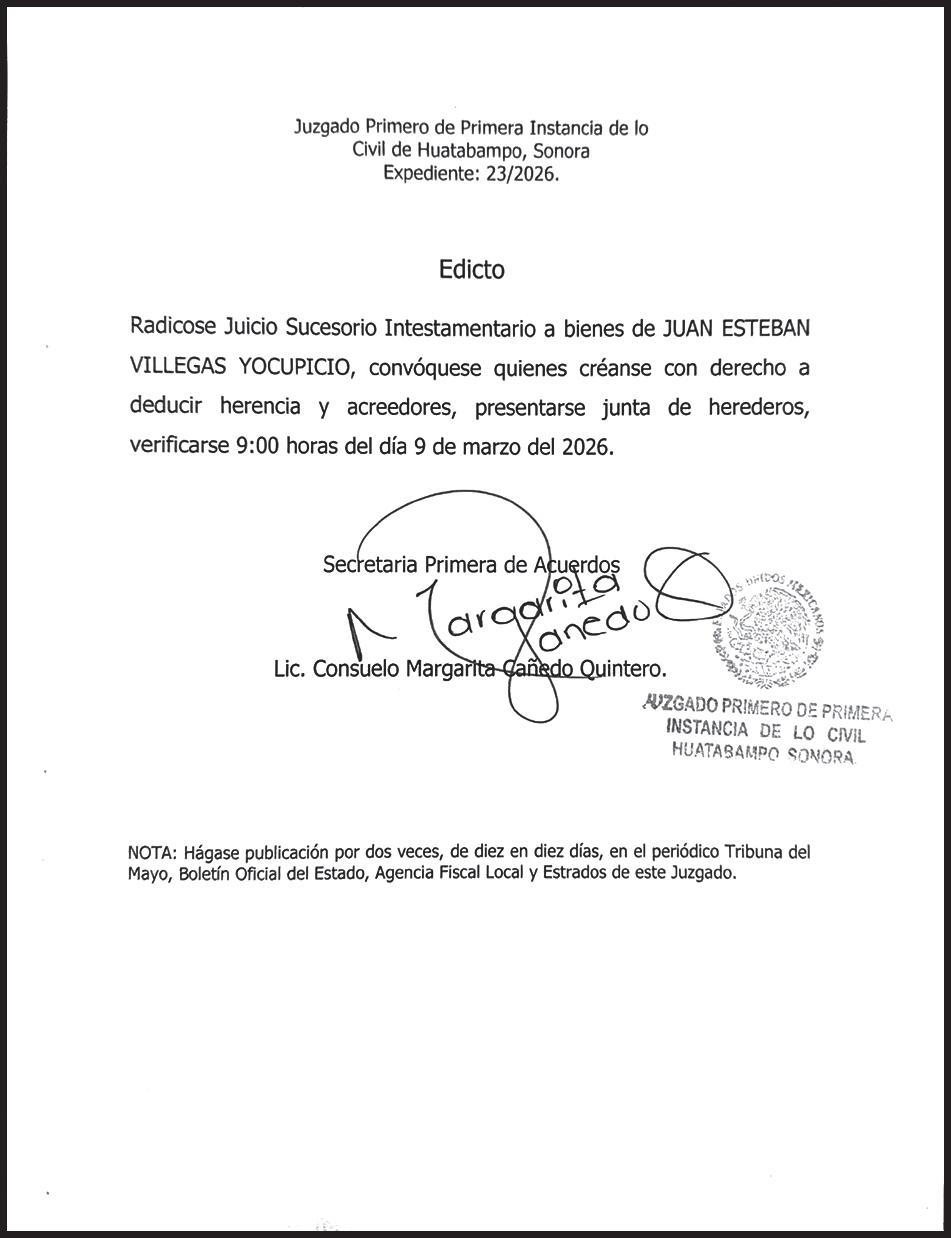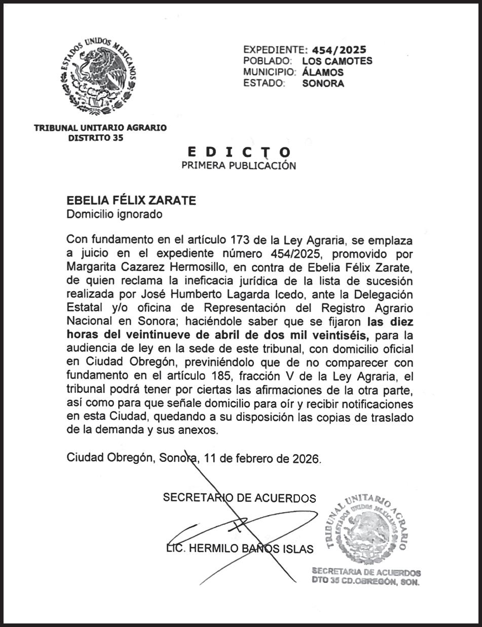 JAVIER LAMARQUE LIDERA PREFERENCIAS POR MORENA PARA LA GUBERNATURA DE SONORA RUMBO AL 2027 >OBREGÓN. PÁG. 1B