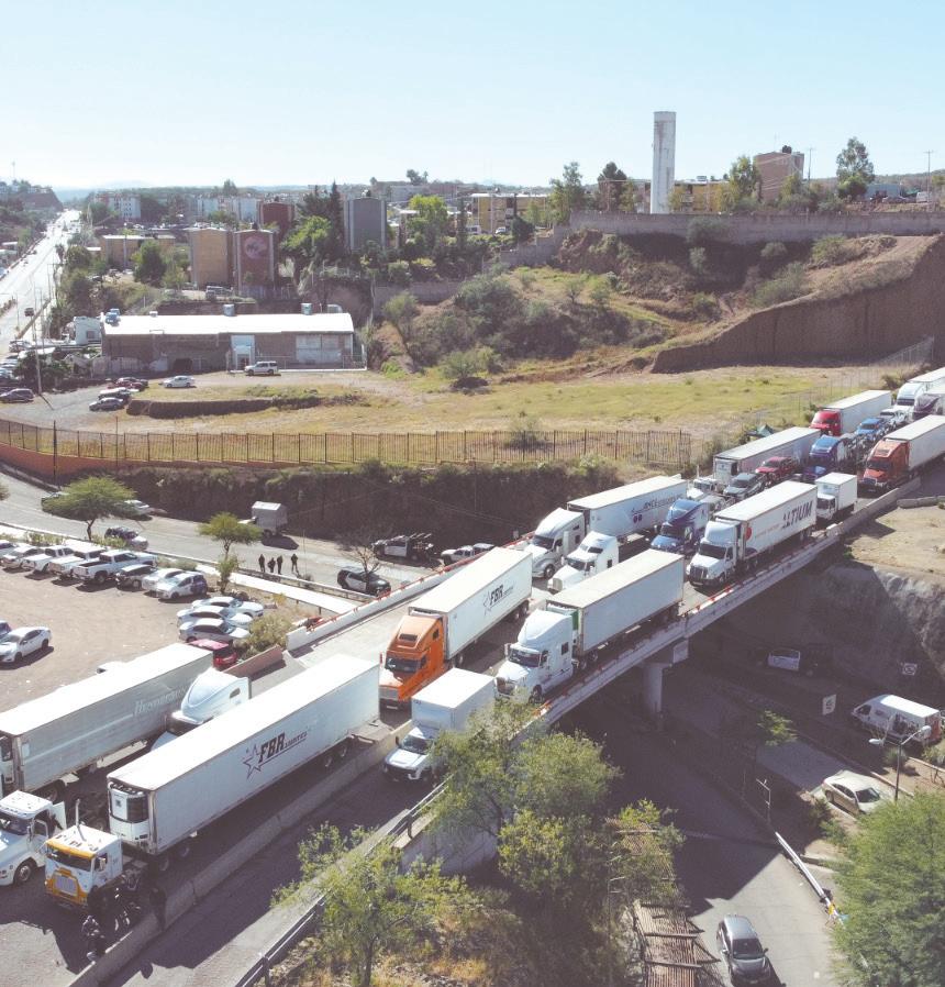 Productores de Sinaloa paralizan el flujo vehicular en la frontera de Nogales: Son otras las demandas de los transportistas señala Celida López secretaria de Sagarhpa, gobierno del estado respalda el gremio sonorense que decidió no unirse a los bloqueos. >AL CIERRE PÁG. 2A